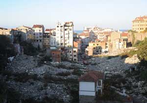 Trabzon'un en eski yerleşim yerlerinden Zağnosdereiçi Sokak'ta ''Kentsel Dönüşüm Projesi'' kapsamında bir çok evin yıkılmasıyla adeta sessizliğe büründü.