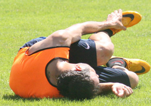 Bu çalışmada Hüseyin'le girdiği ikili mücadele sonrası sakatlanan Gökhan Ünal idmanı yarıda bırakırken, Tayfun takımla birlikte çalışmalara başladı.