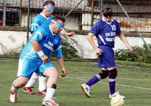 görme engelli sporcular sahada 20'şer dakikadan 40 dakika boyunca ter döktü.