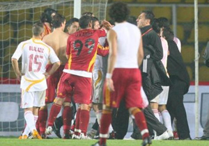 Hakem Mustafa Kamil Abitoğlu'nun uzaktan izlediği bu karmaşa da Kayserispor Teknik Direktörü Tolunay Kafkas ta karıştı. Bir dönem Galatasaray'da da forma giyen Tolunay Kafkas'a Galatasaray tribünlerinden büyük tepki geldi.