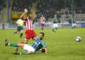 hareketlenen Muhammed Ali'nin, ceza alanına girer girmez sert şutunda, meşin yuvarlak direğin yanından az farkla dışarı çıktı.