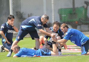 Teknik Direktör Ersun Yanal yönetiminde Mehmet Ali Yılmaz Tesisleri'nde bu aksam 19.30'da başlayan antrenmanda ilk grup salonda kuvvet testinden geçip kuvvet çalışması yaparken, ikinci grup sahada koşu yaptı.