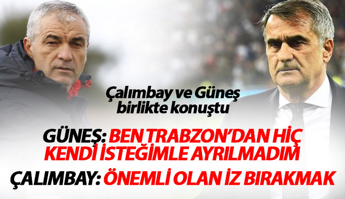 Çalımbay ise "Şenol hocaya kendi memleketine hoşgeldin diyorum. Herkersin bir sorumluluğu var. Beşiktaş'ta futbol oynayıp bitirdim ama teknik direktörlük çok daha farklı. Ben daha küçütüm Şenol hocayla milli takımda oynadım. Ben Trabzon'un başındayım o beşiktaş'ın başında çok güzel bir şey. Şenol hocanın burası içöin ne kladar önemli olduğunu herkes biliyor. Beşiktaş'ta da çok iyi işler yapıyor. Ona başarılar diliyorum.Hepimiz futbol oynuyoruz hoca olarak çalışıyoruz. Ama en önemlisi gittiğiniz yerde iyi iz bırakabilmek. " dedi.