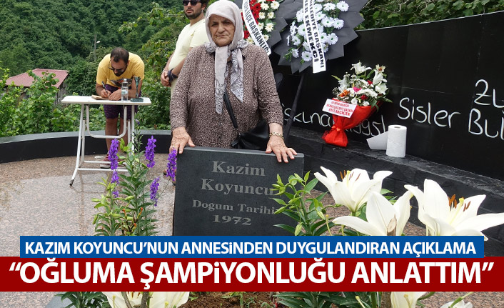 Milyonların dilinden düşmeyen 'Uy Aha' ve 'Dalga Dalga Fırtına' adlı bestelerini Trabzonspor'a adayan oğlunu Bordo-Mavili taraftarların hiç unutmaması ve her fırsatta anmasından gurur duyduklarını söyleyen Hüsniye Koyuncu, duygularını şöyle anlattı: "O Trabzonspor'u o kadar çok sevdi ki, yaşadığı o kısa ömürde Bordo-Mavi renkler hiç eksik olmadı. Şimdi gönül verdiği bu takım şampiyon oldu. Yıllardır her bayrama büyük acı ve hasret içinde girerdik. Şimdi Ramazan Bayramında Trabzonspor'un şampiyonluğu geldi. Bir başka oldu bu kez bayramdaki mezar ziyareti. Oğluma bu şampiyonluğu anlattım, çok duygusal oldu bu kez. Görseydi eğer, çok mutlu olurdu. Trabzonspor kulübünün ve taraftarının Kazım'ı hep anması, şarkılarını maçlardan önce yayınlaması bizi çok mutlu ediyor."